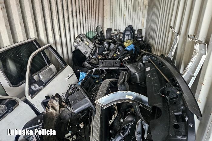 Podczas przeszukania policjanci zabezpieczyli ponad 100 elementów i podzespołów pochodzących z rozebranych pojazdów. Przeprowadzona identyfikacja wykazała, że części pochodzą co najmniej z dwóch samochodów utraconych w wyniku przestępstwa. Skala demontażu wskazuje na zorganizowany i szybki proceder – podkreślają śledczy.