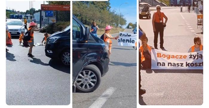 Miejsce to jest głównym wjazdem na Stadion Narodowy, z którego miała skorzystać Taylor Swift, przybywając na swój koncert w Warszawie. Aktywiści nie ograniczyli się tylko do blokady - obsypali wjazd pomarańczowym proszkiem oraz trzymali baner z napisem "Nie stać nas na superbogaczy".
