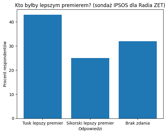 Na pytanie, czy Radosław Sikorski byłby lepszym premierem niż Donald Tusk, 25 proc. badanych odpowiedziało twierdząco, podczas gdy aż 43 proc. wskazało, że woli pozostanie Tuska na stanowisku szefa rządu.