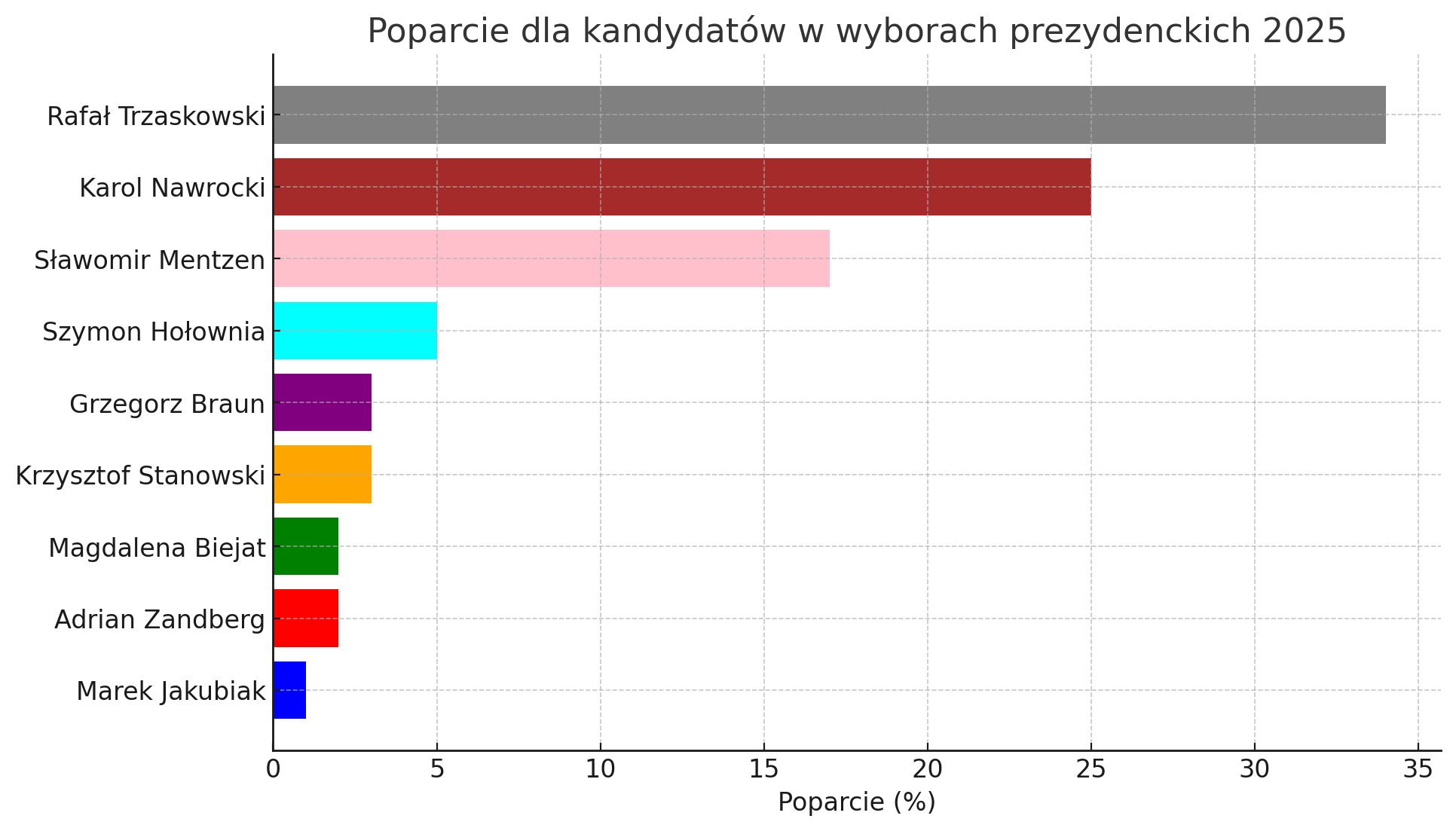 Według najnowszego sondażu prezydenckiego CBOS, Rafał Trzaskowski cieszy się największym poparciem wśród Polaków przed tegorocznymi wyborami. Kandydat Koalicji Obywatelskiej może liczyć na 34 proc. głosów, co daje mu wyraźną przewagę nad pozostałymi rywalami. Sprawdziliśmy, na jaki wynik może liczyć Karol Nawrocki, Szymon Hołownia, Grzegorz Braun i Magdalena Biejat.
