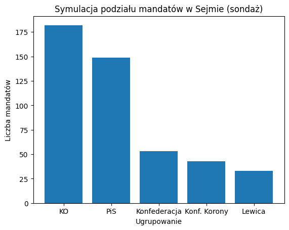 Przy utrzymaniu obecnych wyników przyszły Sejm składałby się z 182 posłów Koalicji Obywatelskiej, 149 przedstawicieli Prawa i Sprawiedliwości, 53 parlamentarzystów Konfederacji, 43 posłów Konfederacji Korony Polskiej oraz 33 reprezentantów Lewicy.