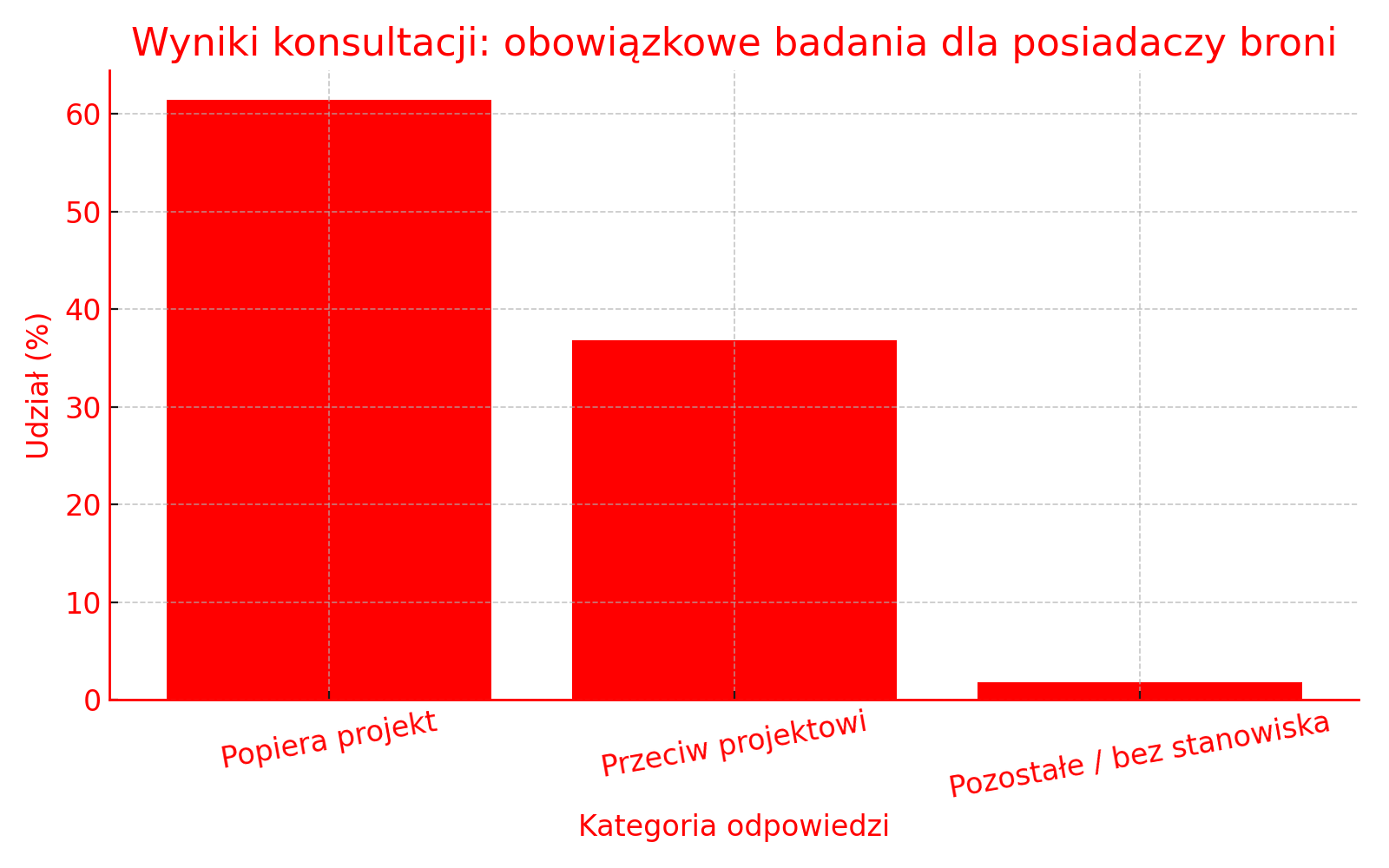 Projekt nowelizacji ustawy został złożony w Sejmie we wrześniu 2025 r. Zakłada on, że każdy posiadacz broni – niezależnie od tego, czy jest myśliwym, sportowcem czy korzysta ze strzelnicy – będzie musiał co pięć lat przechodzić obowiązkowe badania lekarskie i psychologiczne. Obowiązek dotyczy osób do 70. roku życia.