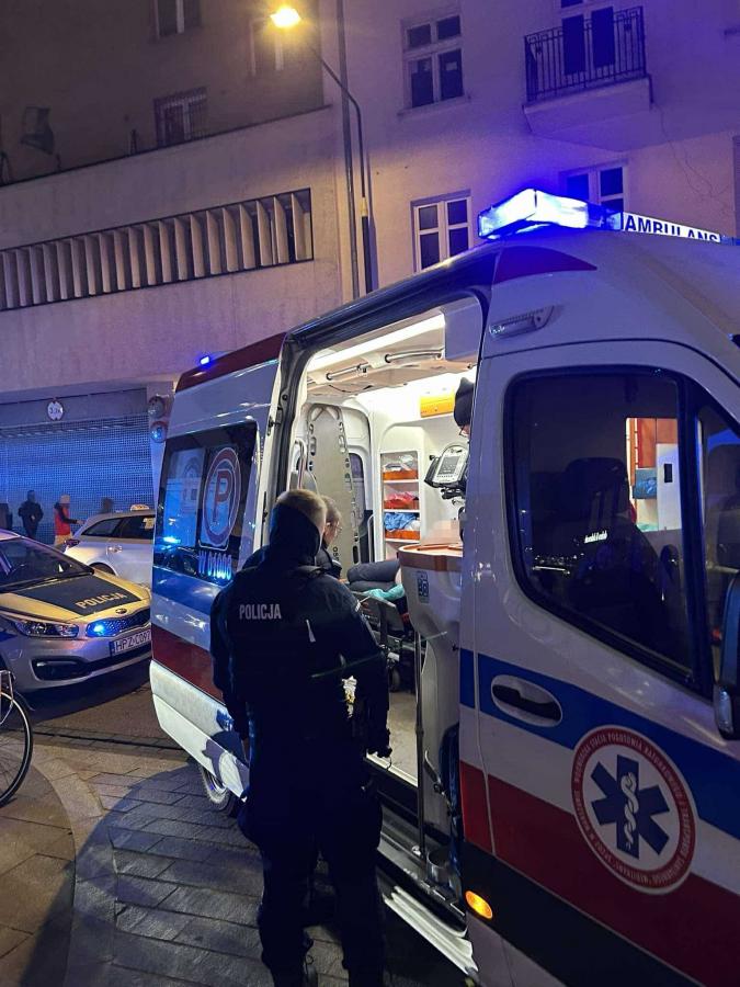 W sobotę wieczorem, przed godziną 22:00, Wojewódzka Stacja Pogotowia Ratunkowego "Meditrans" otrzymała zgłoszenie o mężczyźnie z urazami głowy i nosa leżącym na ulicy Widok 22. Zespół Ratownictwa Medycznego (ZRM) W01 008 natychmiast udał się na miejsce.