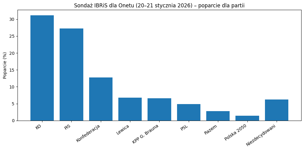Sondaż został przeprowadzony przez IBRiS w dniach 20–21 stycznia 2026 r. Badanie zrealizowano na ogólnopolskiej próbie 1,1 tys. osób. Zastosowano metodę telefoniczną, opartą o standaryzowane wywiady kwestionariuszowe wspomagane komputerowo.