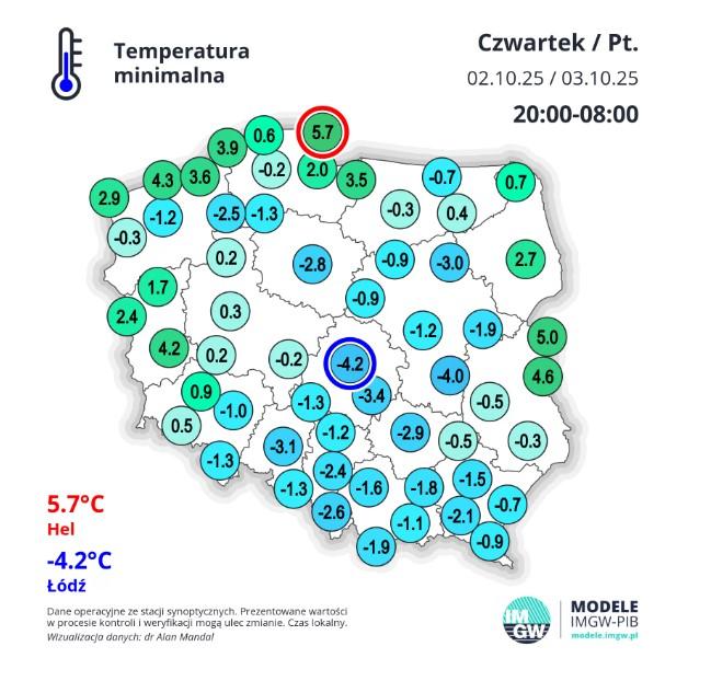 Temperatura spadnie do 5–8°C, nad morzem utrzyma się w okolicach 9–10°C. Wiatr umiarkowany, okresami porywisty, w górach podmuchy mogą osiągać 80–85 km/h.