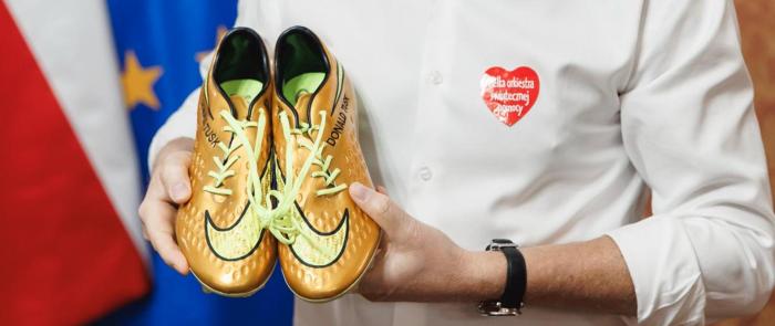Złote korki piłkarskie wystawione przez Donald Tusk na rzecz Wielka Orkiestra Świątecznej Pomocy osiągnęły rekordową cenę, która na długo zapisze się w historii charytatywnych licytacji w Polsce. Aukcja zakończona w czwartek przed południem przyniosła 700 tys. 250 zł, co czyni ją najwyżej wycenioną ofertą tegorocznego, 34. Finału WOŚP.