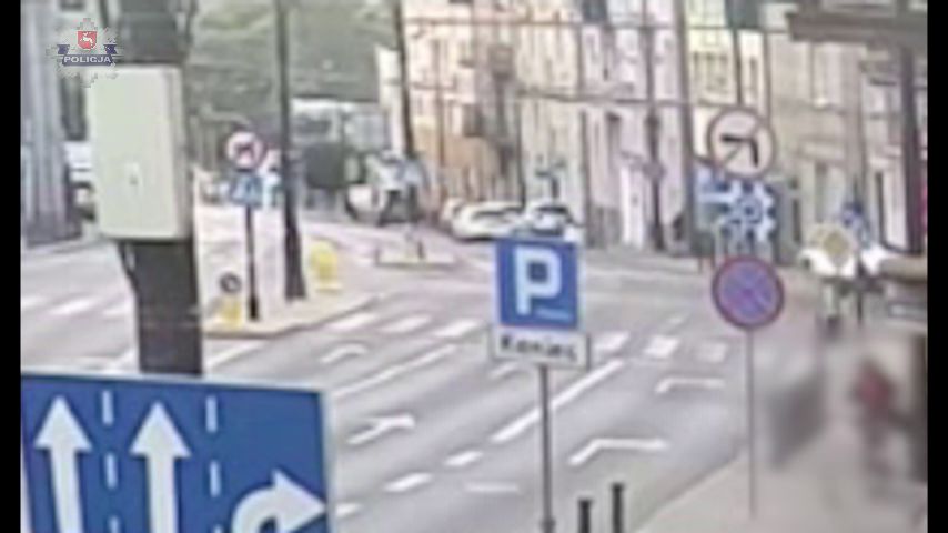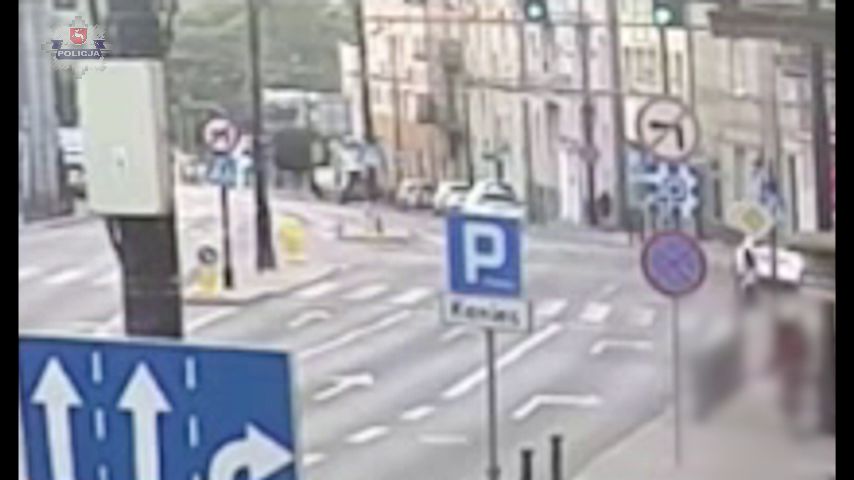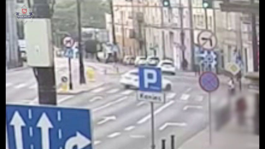 Lublin: Pijany kierowca Mercedesa staranował sygnalizator i latarnię. Nagranie z wypadku