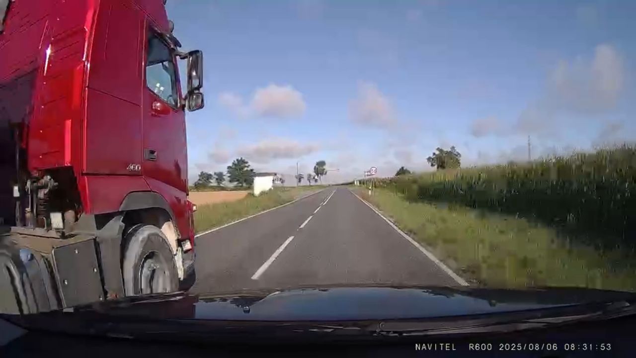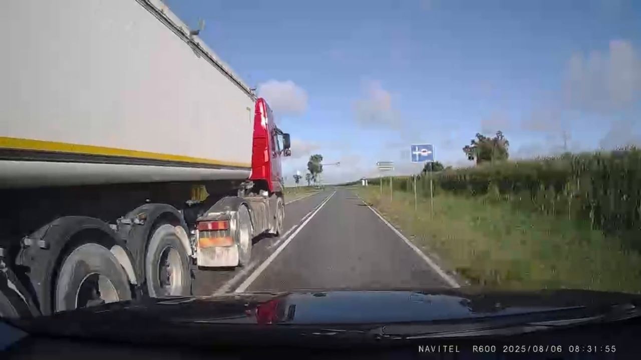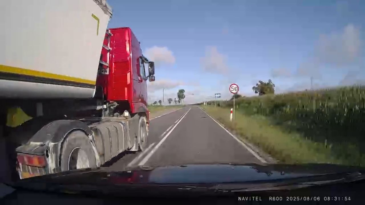 Wieszki: Kierowca ciężarówki wyprzedzał na podwójnej ciągłej. Policja szuka sprawcy [WIDEO]