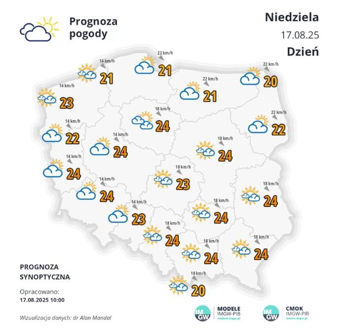 Prognoza pogody informuje o przelotnych opadach w niedzielę, ale na ogół małym i umiarkowanym zachmurzeniu. Temperatury będą oscylować od 19-26°C, z lokalnymi opadami na północy i w górach. Następny dzień ma być spokojniejszy, z podobnymi warunkami i temperaturami między 18-24°C. W nocy z poniedziałku na wtorek oczekiwana jest stabilna pogoda, bez opadów i burz. Temperatury spadną do 6-16°C, a wiatr będzie słaby.