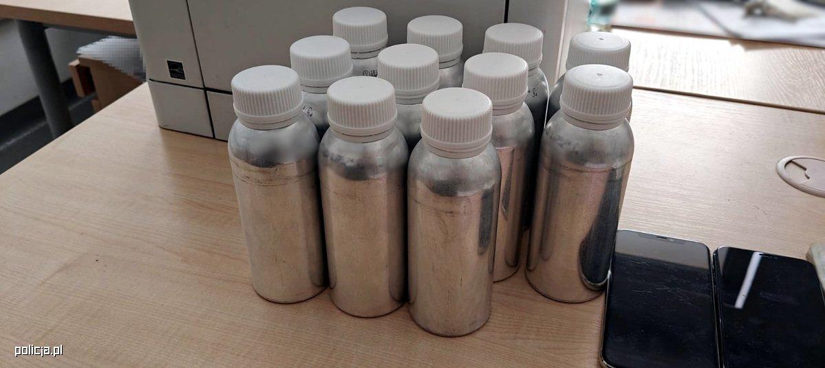 Zdjęcie ze strony policyjnej. Mężczyźni próbowali wprowadzić na rynek płynną tabletkę gwałtu