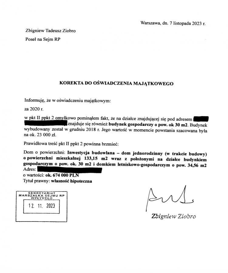 Zbigniew Ziobro prezentuje swój majątek składający się głównie z nieruchomości i oszczędności. Jego dom o powierzchni 130 m² wraz z niewielkim budynkiem gospodarczym i działką wyceniany jest na około 750-950 tysięcy złotych. Poza tym posiada grunty rolne i leśne o wartości około pół miliona złotych. Spekuluje się, że może szukać schronienia na Węgrzech, podobnie jak inni politycy. Jednak ekspertów zdaniem uchylanie się od odpowiedzialności przed polskim wymiarem sprawiedliwości byłoby niemożliwe na dłuższą metę.