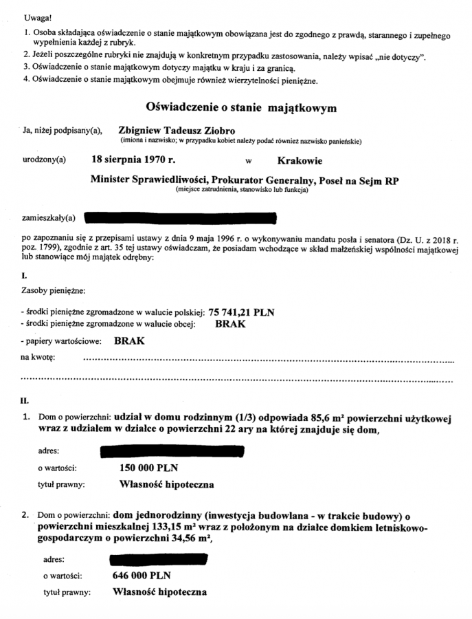 Oświadczenie majątkowe Zbigniewa Ziobro – zarobki, pieniądze i nieruchomości